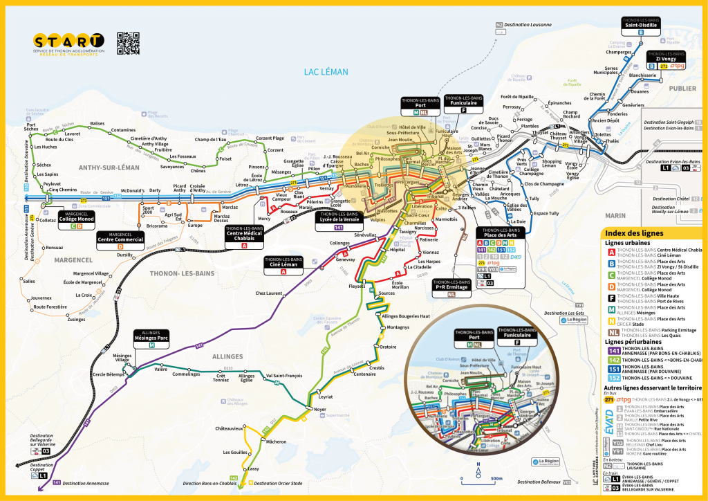 Quelques recherches supplémentaires seront nécessaires pour en savoir plus sur les conditions d’accès aux bus thononais. Même si la tarification est zonale* sur le réseau Star’t, aucune mention n’est faite sur les plans (il suffisait pourtant de tracer un trait du Nord au Sud).